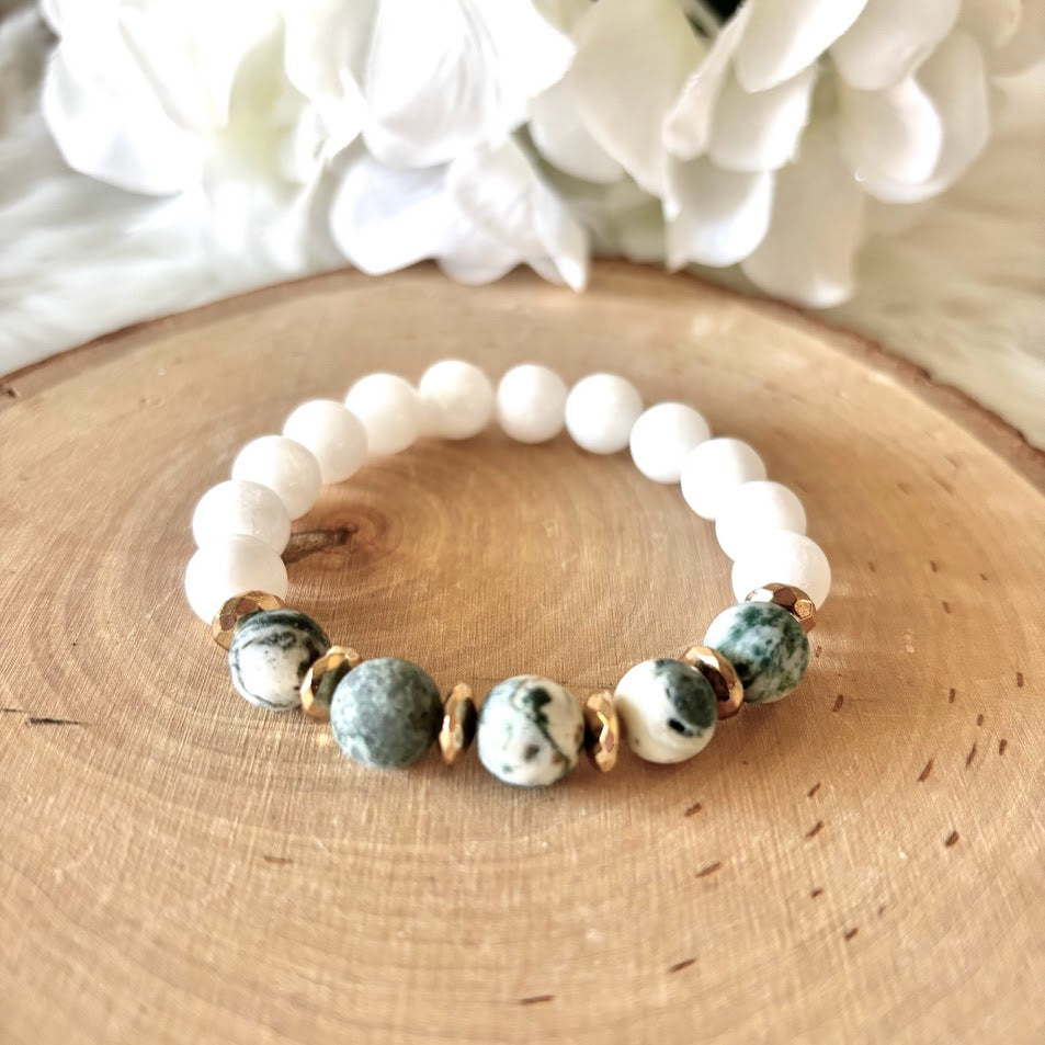 This bracelet was created for the woman who values alignment across thought, emotion, and action. It carries a balanced, integrative energy that supports clarity, grounded growth, and calm self-expression.